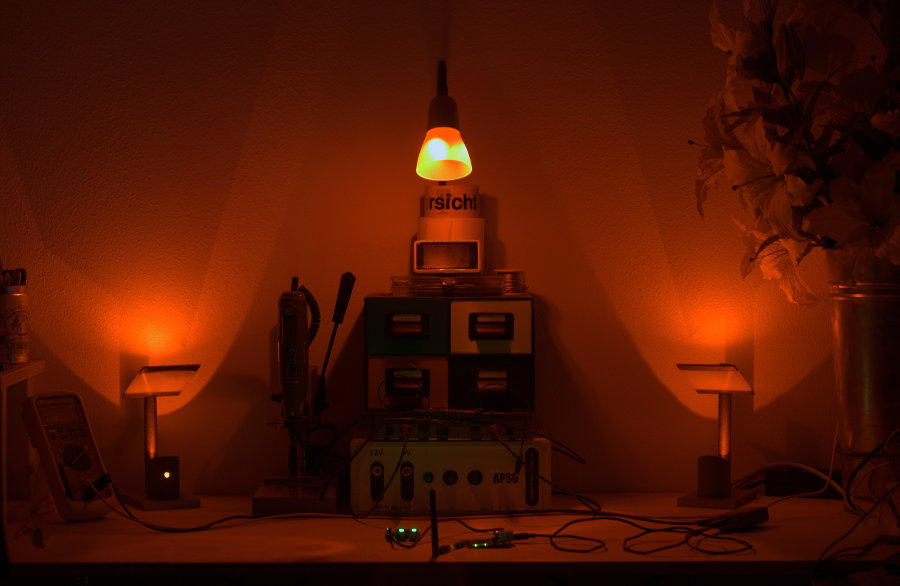 Building things can be a lot of fun. Even more so, if the parts you use are things, that other people threw away. A while ago, the workbench needed a more appropriate lighting and 3 Luxeon 1W LEDs were lying around in the MISC box, other parts were collected from trash found in containers.